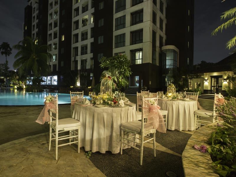 Your choice of chilled fruit juice and seasonal fresh fruits. Indonesian style fried rice,